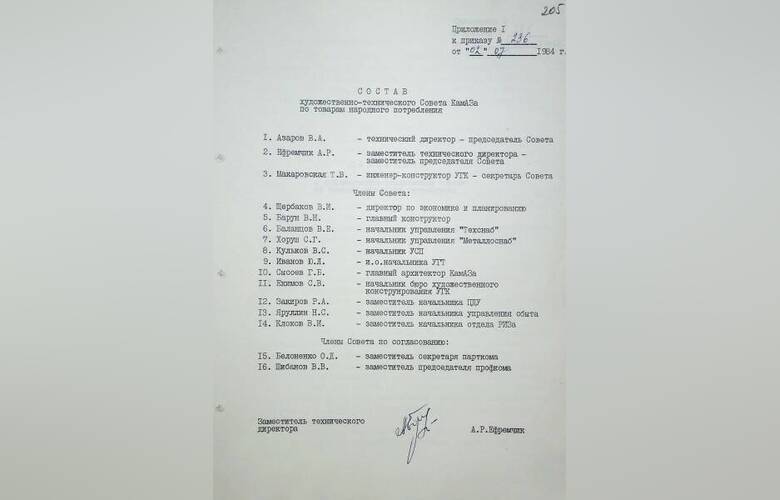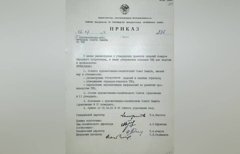 Внизу приказ генерального директора КАМАЗа о художественно-техническом совете КАМАЗа по ТНП.