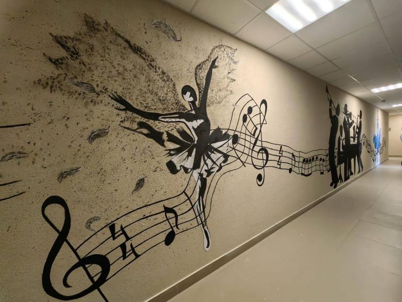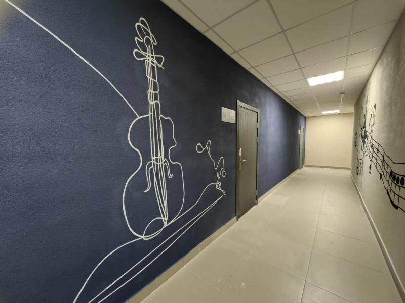 По просьбе преподавателей строители расширили сцену, чтобы хореографические коллективы могли выступать в полном составе, раньше для этого не хватало места. В кабинетах для танцев, теоретических и художественных классах появились тематические рисунки, разработанные главным архитектором города Маликой Шамсиевой и согласованные с педагогами.