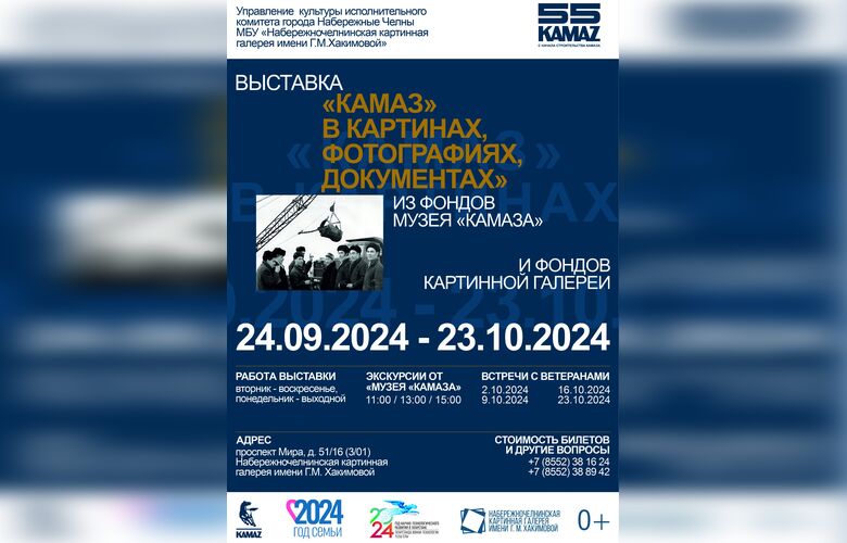 Торжественное открытие выставки «"КАМАЗ" в картинах, фотографиях, документах» состоится 26 сентября в 16.00, но фактически экспозиция доступна с завтрашнего дня. Она будет работать во все дни недели, кроме понедельника, до 23 октября. Гидами для желающих выступят сотрудники Музея "КАМАЗа", экскурсии будут начинаться в 11.00, 13.00 и 15.00.